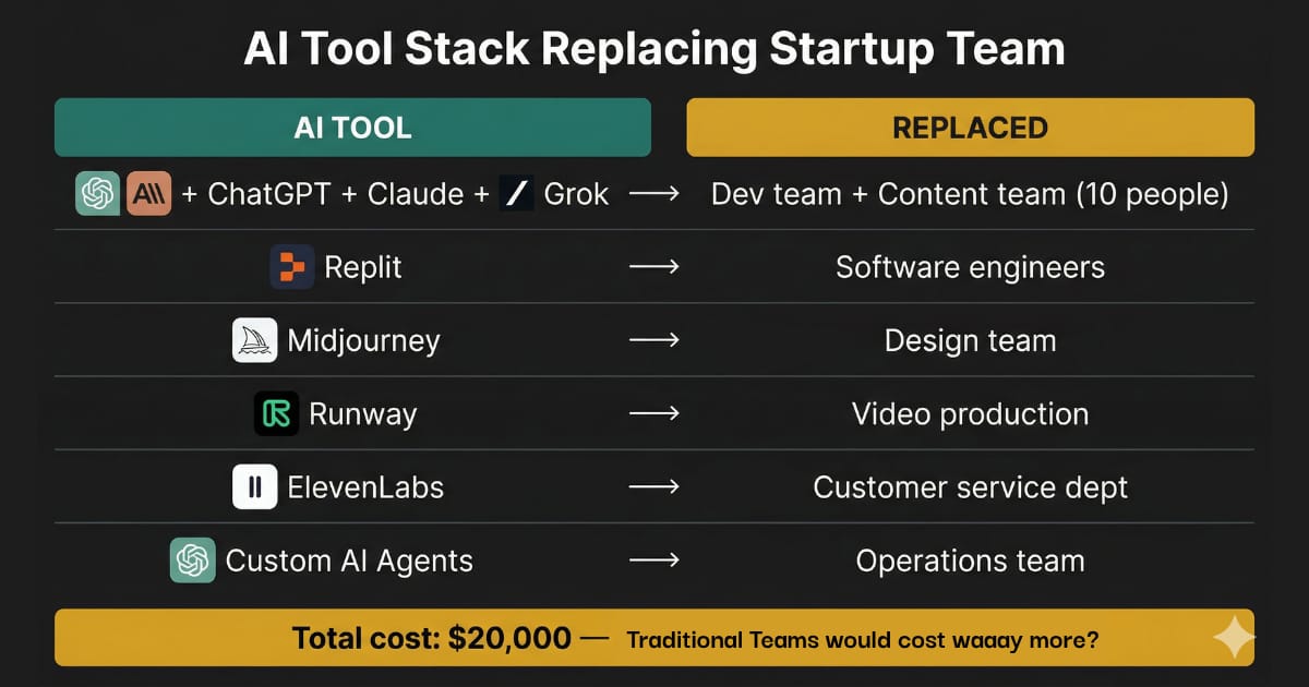 Gallagher's piece? The website. The checkout flow. The ad creatives. The customer service chatbot. The analytics dashboard. All built with AI tools. He owns the customer relationship and the marketing engine. That's it.